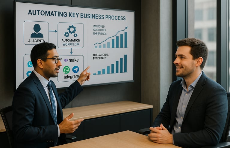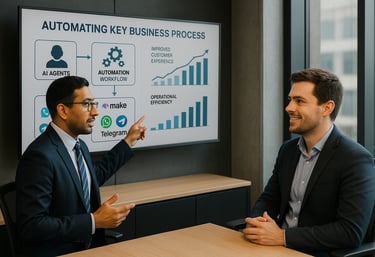 Unleash the hidden power of AI for your business! Transform data into decisions and manual processes into automated workflows that save you time and money. In personalized sessions, we’ll map opportunities, apply AI tools, and build a roadmap for immediate implementation.